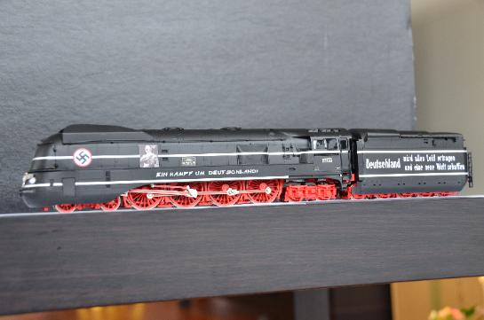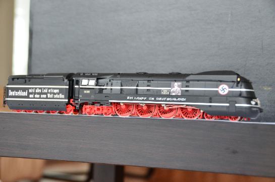 | EisenArt - LEMACO German DRG BR 06 001 Streamlined Steam Locomotive WWII Propaganda Livery This custom made BR 06 is an exclusive project from EisenArt. The engine had been upgraded and nothing a normal BR 06 from Lemaco can be compared to this one. EisenArt only made one piece for each project, and this model is born for collector who wants only the best. Brand New condition USD$ 1,850.00 |