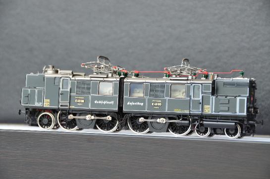 | Micro-Feinmechanik 11513HL German DRG E 49 00 Electric Locomotive DRG Gray/White lines Scheme, Propaganda Version This highly collectible model is a crown diamond for Micro-Metakit collectors. This special model had been produced for only 15 pieces. It comes with fantastic details such as full cab interior, functional lights, and fully detailed engine room interior. Brand New condition USD$ 1,650.00 |